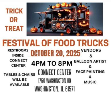The largest variety of food trucks in the area will be set up for business and have their Trick or Treat. Everyone will have candy to hand out. There will be tables and chairs set up or you can bring your own. Vendors will be open for business, anlong with a farmers market, including fresh beef and local honey. Balloon man, face painter, and ride a train will be available. Live music by Roy Fifer. Come out and enjoy a evening of delicious food and fun for all ages!